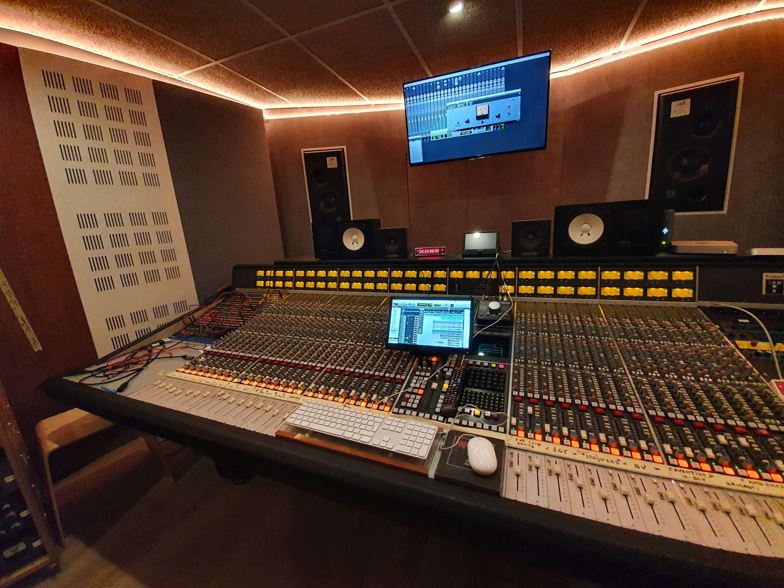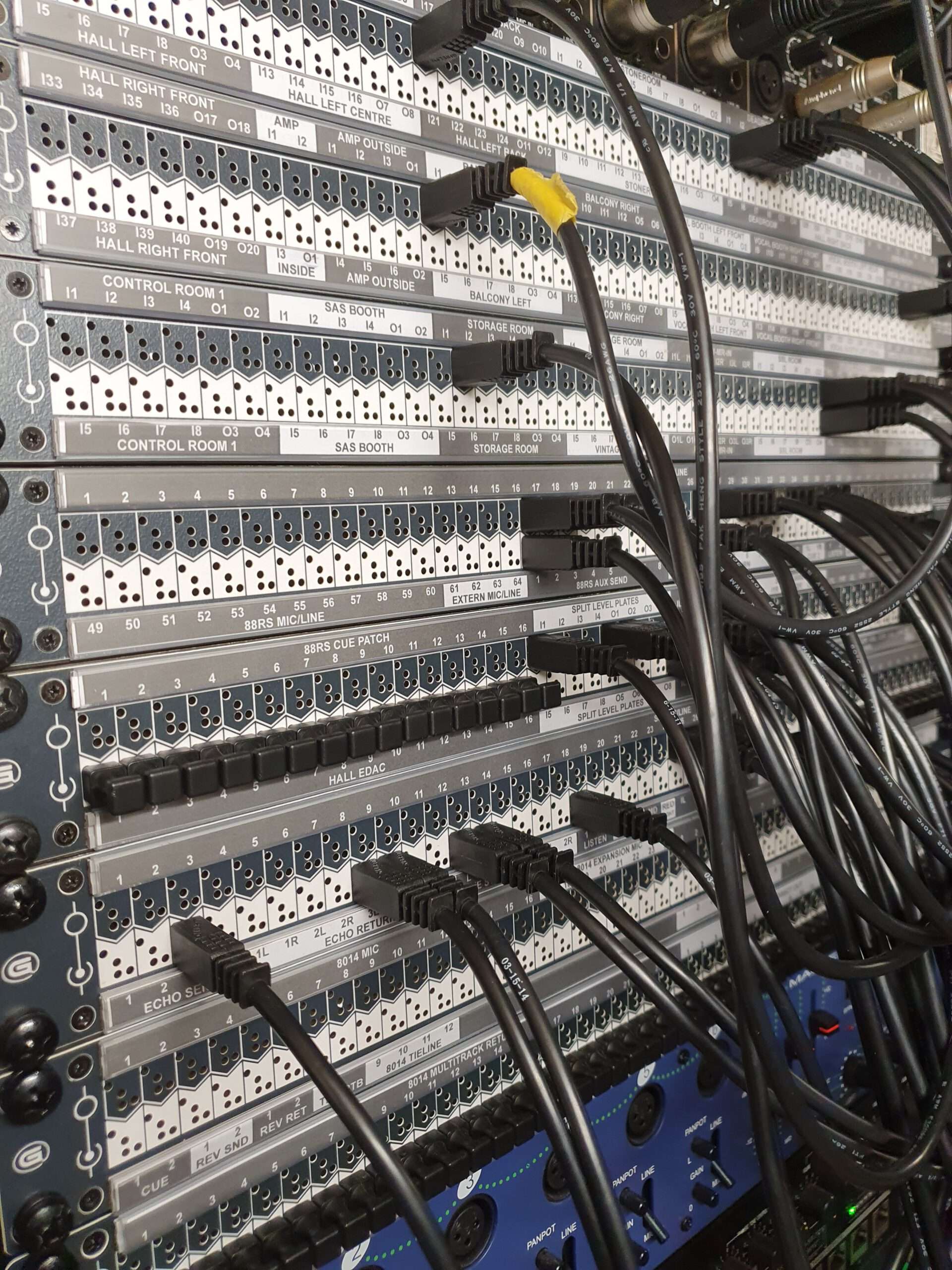 Part of the equipment used by the different control rooms is located in a room one floor below the room with the SSL mixing desk (see photos).